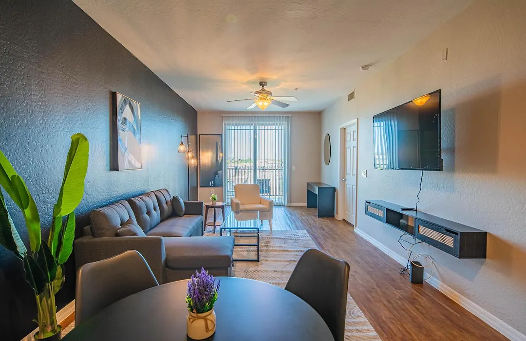 Modern 2Bd - Asu - Sloan Pk - Wd - Parking - Sleeps 8 Apartment provides an equipped kitchen with all necessary utensils to prepare meals. Modern 2Bd - Asu - Sloan Pk - Wd - Parking - Sleeps 8 Apartment is also situated 0.6 miles from Phoenix Sky Harbor International airport. Maintain your exercise routine effortlessly at a fitness room offered by the apartment.
